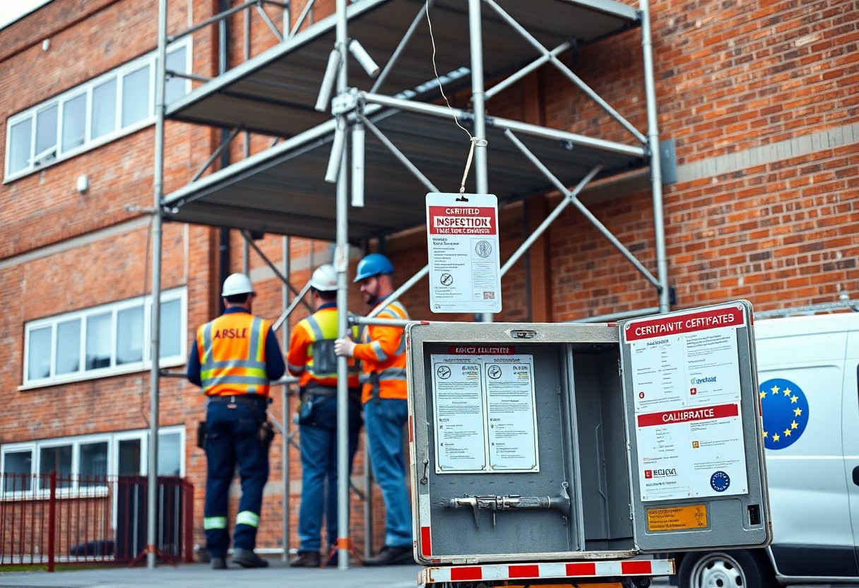 In practice you should receive a written conformity pack, an initial competent‑person inspection at handover and documented periodic checks-commonly every 7 days and after severe weather (gusts >50 km/h). Non‑conformances must be tagged out and rectified before work resumes; a Berlin renovation case saw weekly checks detect faulty ties that prevented a collapse, saving time and cost on rework.
